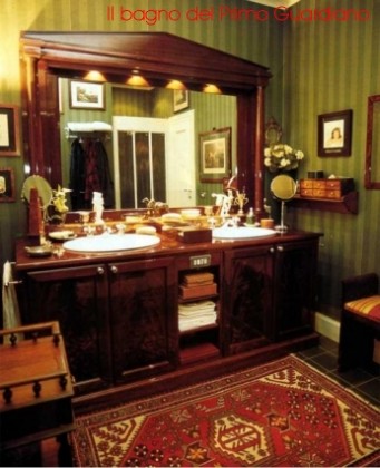 Il gentiluomo si recherà quindi nel bagno, avendo cura d’appendere la vestaglia all’apposito attaccapanni. Dopo essersi liberato degli indumenti della notte ed aver provveduto alla propria igiene, indosserà la biancheria fresca e provvederà a lasciare il pigiama o la camicia da notte nell’apposito contenitore per quella da lavare. Il bagno del gentiluomo è il luogo in cui egli attende alla sua toletta ed alle sue necessità fisiologiche.
