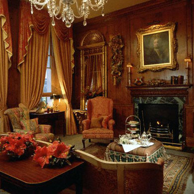 Dalla sala da pranzo si accederà al fumoir o smoking room. Questa stanza è particolarmente cara al gentiluomo. Terminato il desinare egli vi si ritira con i propri amici per fumare e discorrere, mentre le signore continueranno le conversazioni muliebri nel salottino del caffé. V’è chi critica quest’uso trovando più cortese nei confronti delle Dame il rinunziare al fumo per conversare amabilmente con esse. Non concordo con ciò, in quanto le gentili signore amano ogni tanto star tra loro per raccontarsi piccoli segreti o disquisire d’argomenti squisitamente femminili: moda, trucco, problemi dei figli, gossip e altri sublimi misteri, conversazioni di cui la presenza degli uomini le priverebbe, causa l’innata riservatezza che le signore possiedono riguardo al mondo muliebre. Nella saletta per il fumo gli arredi saranno assolutamente maschili, comode berger in pelle scura dallo schienale alto e dalle orecchie avvolgenti offriranno la seduta ai convitati del padrone di casa. I posacenere saranno in numero adeguato e sempre capienti. Accendisigari da tavolo saranno sparsi un po’ ovunque. Le collezioni di pipe del padrone di casa troveranno invece migliore collocazione nella biblioteca, luogo in cui normalmente egli fuma quand’è da solo. I quadri raffigureranno scene di caccia, partite di cricket, momenti di tornei di golf. Un rifornito mobile bar conterrà cognac, brandy o whisky pregiati. Meglio servirli da caraffon in cristallo anonimi. Il pregio di questi distillati non è l’etichetta sulla bottiglia, ma il contenuto. Inoltre, i gusti del padrone di casa saranno così squisiti che attingere alla sua riserva rappresenta da solo un interesse per gli ospiti. Il gabinetto per fumare, ove non dovessero esservi nella casa sale destinate all’uopo, potrà accogliere coppe e medaglie del padrone di casa vinte in competizioni sportive o trofei di caccia.