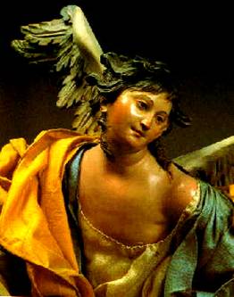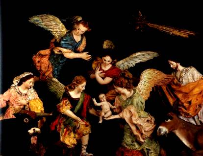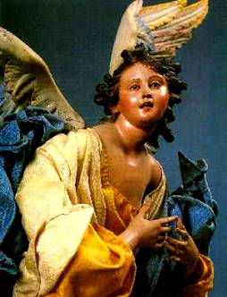 Il coro angelico sopra la grotta, in alternativa, potrà anche essere rappresentato collocando, al centro del triduo dei messaggeri divini, un angelo che ha tra le mani il cartiglio "Gloria in excelsis Deo", simbolo della gloria del Padre, alla sua destra figurerà un angelo con il turibolo, simbolo della gloria del Figlio ed alla sinistra un angelo che suona la tromba, simbolo della gloria dello spirito santo. Il quarto angelo, comune, comunque, ai due gruppi precedenti, sarà quello sospeso sopra i pastori dormienti che annuncia l’arrivo del Messia. Egli recherà tra le mani un cartiglio in cui si potrà leggere: "hodie natus est vobis Salvator mundi". I pastori che compaiono in questo gruppo saranno raffigurati in guisa di persone che si stanno levando dalla posizione dormiente e volgono lo sguardo stupefatto e pieno di meraviglia verso l’angelo annunziante.
