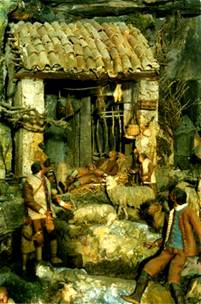 Nel’iconografia presepiale italiana più raramente si trovano, rispetto ai paesi d’oltralpe, ambientazioni che hanno come tema episodi anche precedenti alla nascita di Gesù: