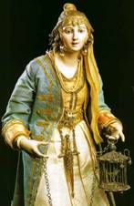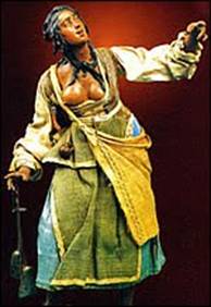 la zingara, raffigurata alternativamente con un bimbo in un braccio e nell’altro un cesto con oggetti metallici all’interno o con entrambi;