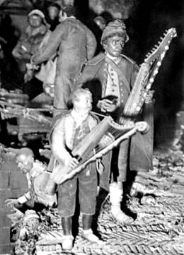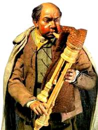 gli zampognari, spesso collocati in prossimità della natività, con il suonatore di ciaramella ed il cantatore di novene;