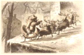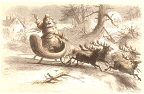 In questa poesia egli, dotò San Nicola di otto renne che denominò: Cometa, Ballerina, Fulmine, Donnola, Freccia, Saltarello, Donato, Cupido e gli attribuì l’abitudine di passare attraverso le canne fumarie dei camini. Babbo Natale non era ancora come viene rappresentato oggidì. Fu solo nel 1860, grazie all’opera di un disegnatore, Thomas Nast,