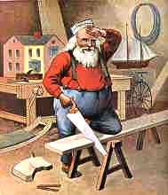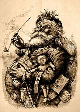 che Santa Claus iniziò ad assumere la fisionomia odierna: quella dell’omone panciuto che indossa un vestito bordato di pelliccia bianca residente al Polo Nord; residenza che, nell’anno seguente, fu precisata ed ampliata con la fabbrica di giocattoli dal romanziere George P. Webster nello scritto "Santa Claus and his works".