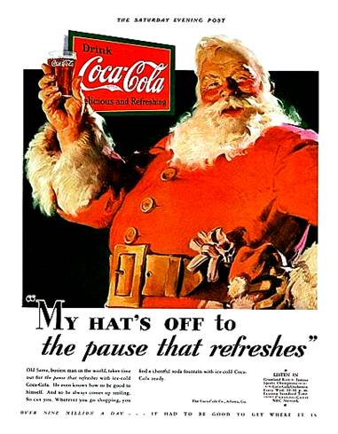 La Coca Cola nel 1930 incaricò, per la propria pubblicità invernale, l’artista Haddon Sundblom di eseguiore una raffigurazione di Babbo Natale. Si dice che egli, nel far ciò, si sia ispirato ad un vicino di casa dall’aspetto bonario e tranquillo.