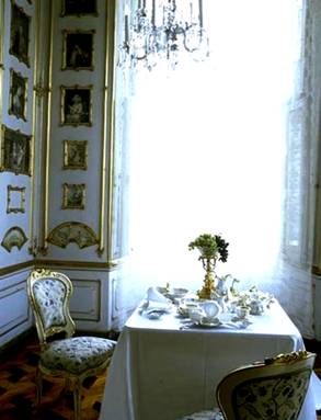 Sedie in ghisa rivestite di comodi cuscini e tavoli, anch’essi in ghisa, adorni di volute a forma di tralci di edera o di vite o, comunque, riccamente decorate, usualmente di colore verde o bianco, verranno levati dai luoghi di riposo invernali e posizionati anch’essi sulle terrazze o sulle verande per consentire al gentiluomo di consumare una piccola colazione all’aperto.