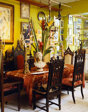 In ogni ambiente d’una elegante magione vi saranno abatjour che renderanno l’atmosfera favorevole alle conversazioni in cui il padrone di casa discetta coi suoi amici, o alle riflessioni solitarie d’abbigliamento, di sigari, pipe, motori e altri piaceri virili. Le basi di questi abatjour saranno preferibilmente vecchi lumi a petrolio con il serbatoio in ceramica od opalina dipinta, candelabri in ottone od argento, o altri oggetti con una specifica destinazione ad ardere ed illuminare. Molte altre cose vanno bene, ma l’uomo elegante diffiderà per tal uso di bottiglie e vasi, così cari agli architetti da grande distribuzione ed ai loro clienti. In talune dimore si vedono bei lumi anche con basi derivate da statuine o gruppi scultorei. Questi ultimi, particolarmente impegnativi, si adattano però a case di rilevante dimensione. I paralumi di questi lampade sono solitamente in stoffa, ma ve ne sono anche di belli realizzati utilizzando vecchie stampe. Un’abitudine non disdicevole è quella di posizionare nei vari ambienti una vecchia radio, ovviamente funzionante, per consentire al gentiluomo od ai suoi ospiti l’ascolto di un radio-giornale o qualche brano di musica classica senza doversi recare appositamente nel salottino della musica. I vecchi mobili radio potranno sicuramente far bella mostra di sé. Apparecchi radiofonici moderni non saranno collocati in modo assolutamente visibile, a meno che la loro linea non sia in linea con l’intero arredamento. Ambienti intimi potranno accogliere i ricordi di luoghi lontani. Statuine in giada, in alabastro, in avorio, in corallo, costituiranno un gradevole punto d’attenzione per i frequentatori d’una dimora elegante. Scacchiere in ebano ed avorio od in altri pregiati materiali indurranno gli ospiti del gentiluomo a trascorrere momenti piacevoli in tal gioco. In una dimora elegante non mancheranno in ciascuna stanza vasi da fiori, che dovranno essere sempre freschi. Fiori in stoffa, a meno che non siano di particolare pregio, troveranno abitazioni più appropriate rispetto a quella del gentiluomo. Le composizioni di fiori secchi, pur belle talvolta, inducono malinconia.