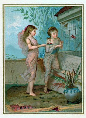 Se nella abitazione del gentiluomo vi fosse uno jardin d’hiver, trovo sia bello sistemare colà la nostra piccola voliera. Potrà essere posizionata su eleganti tavolini o, se fosse possibile, sospesa ad un tirante che scenda dal soffitto.