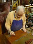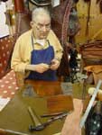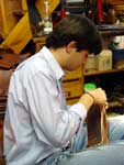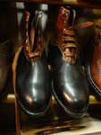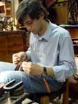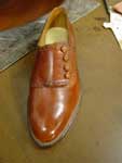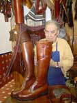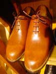 La Guarnicioneria Lopez è innanzitutto un paradiso per gli appassionati di equitazione. La specializzazione della casa è nell'attrezzatura per la "doma vaquera", monta tipica andalusa. Per questa attività hanno veramente tutto: selle, finimenti, finanche attrezzature e ferramenta. Chi non va a cavallo non potrà comunque fare a meno di ammirare la vasta modellistica di stivali. In una delle foto che allego si vede l'interno di un pezzo su misura ordinato dal Re Juan Carlos, la cui forma porta le sue iniziali. Quanto a clientela, mi sembra che siamo abbastanza a posto. Una calzatura tira l'altra e così in cinquanta anni di attività la Guarnicioneria ha sviluppato una gamma veramente interessante di mezzi stivali e scarpe, tutte orientate al tempo libero ed all'aria aperta. I pellami vanno dal cuoio grasso al vitello, ma sempre in spessori piuttosto importanti e con un aspetto inequivocabilmente sportivo. Molto interessante uno stivaletto allacciato bicolore nero-cuoio, di cui riporto una foto. Anche la derby tre buchi su modello decisamente berlutiano ha un tocco di originalità nella finitura "campestre" che ha assunto in questo laboratorio. Praticamente unica la derby abbottonata, che vedete in un bellissimo color miele. Le scarpe pronte sono solide ed economiche, atteso che quasi tutte vantano fondi con cucitura goodyear. Le piante sono molto larghe e certamente calzano con facilità e comodità, anche se occorre essere amanti della calzatura massiccia. Per i più esigenti, il laboratorio di Via Moratin lavora tranquillamente su misura. Il costo di un paio cucito a mano su misura è di circa 750 euro. Si noti però il livello della cucitura, coi punti fittissimi della migliore tradizione artigiana (vedi foto di questo dettaglio). Nel laboratorio lavorano il proprietario Francisco Perez Galan ed un apprendista: Jose Miguel Galvan. Il cuore dei ricercatori di oggetti destinati a gusti precisi e profondi, di manifatture veramente artigianali, si apriranno nel vedere un baldo giovane, peraltro di bell'aspetto, impegnato al banchetto di calzolaio. Noi lo abbiamo visto convinto ed entusiasta del mestiere, il che lascia sperare per il futuro. Oltre al settore equestre e calzaturiero, non mancanbo accessori interessanti come le cinture. Quelle lavorate a motivi andalusi (da 50 a 150 euro) rappresentano forse il migliore ricordo di questa straordinaria città. Si realizzano poi astucci e valige, tra cui quelle bicolori in cuoio stampato, tipiche della regione, che si vedono nell'equipaggiamento di qualche torero. Giancarlo Maresca - Maggio 2004