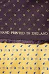 Marinella è nato come un fondaco di cultura inglese. Durante la seconda guerra mondiale, quando era impossibile approvvigionarsi dei tessuti, della maglieria, dei cappelli ed ombrelli per la quale la ditta andava già famosa, si preferì restare senza merce piuttosto che cambiare rotta verso i prodotti autarchici. Ancor oggi la lingua più parlata è l'inglese. Soprattutto nei tessuti, rigorosamente di produzione britannica. Raps, twill e saglie sono tutti tessuti e stampati oltremanica, come un tempo. Marinella è praticamente specializzato nei microdisegni, realizzati su vecchi tavoli da stampa con le tecniche tradizionali di applicazione e corrosione. Cioè realizzando il disegno con successive passate su una base chiara o distruggendo quello di piccole zone e sostituendolo con altro in ulteriori fasi di stampa. La scelta è infinita ed ogni settimana arrivano i nuovi squares. Di ogni disegno vengono realizzati solo quattro esemplari, sicché, ancorché sia molto facile incontrare altri con una cravatta Marinella, è quasi impossibile che sia proprio uguale alla Vostra.
