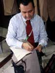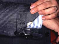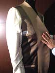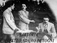 Una storia narra di un uomo che viaggiò per tutte le terra conosciute in cerca di qualcosa, tornò poi a casa e la trovò… La storia dei sarti DeTogni nacque nel 1948 quando Luciano, su desiderio del padre, imparò l’arte della sartoria alla tenera età di 8 anni: "non voleva che bighellonassi per strada. Al mattino andavo a scuola, nel pomeriggio ago e filo", così si racconta Luciano. Già nel 1962 Sarto Luciano realizza il sogno di aprire una sartoria tutta sua. Sin da giovane il figlio maggiore di Luciano, Adamo, si appassionò al lavoro del padre. Oggi Adamo, poco più che trentenne, ha preso le redini dell’Atelier DeTogni con la voglia e l’obbiettivo dichiarato di elevarlo a fornitore dell’Ordine Cavalleresco delle Nove Porte: "dalla lettura di Monsieur, dalle pagine del sito sino alla partecipazione ad un Laboratorio a Bologna da Dante De Paz, mi sono rispecchiato in interessi e ideali. Voglio continuare così l’opera che con tanta passione mio padre ha iniziato". La Sartoria DeTogni si distingue per una cura veramente attenta del taglio. All’uopo v’è da sottolineare il numero di prove per ogni capo che non è fisso: "ciò che conta è il risultato, soprattutto che il cliente esca di qui soddisfatto", sottolinea Maestro Adamo. Aggiunge poi, "Ogni capo parla della complicità tra Sarto e Cliente, laddove questo non avviene si nota subito. Un dettaglio può far la sostanziale differenza: qui si lavora per l’Eleganza e la gioia di vestire. Non sarà certo un minuto o una prova in più, se servono, a mandarci in rovina. Ciò che conta è il risultato, la soddisfazione". Adamo ha inoltre dalla Sua di essere un sagace chiacchierone: la sintonia è presto fatta. Il lavoro per la realizzazione di un capo passa attraverso tre distinti processi. Il primo processo di cui si occupa la Sartoria DeTogni, qui Luciano è un attento consigliere, riguarda la scelta dei tessuti che, attraverso la ricerca di stoffe altamente qualificate, consente di soddisfare i gusti di una clientela molto esigente. La Sartoria comunque lavora volentieri anche con tessuti consegnati dal cliente stesso. Sempre in questa fase si delineano i tratti che il capo deve avere per materializzare il "Sogno". Il secondo processo è il taglio che vede impegnato direttamente il Maestro Adamo attento a curare ogni dettaglio con cura pressoché maniacale. Si giunge quindi alla realizzazione, nel terzo processo, del capo unendo fianchi, spalle, collo e maniche. A questo punto inizia la fase di limatura dell’abito attraverso prove e conseguenti adattamenti sino ad ottenere IL vestito del cliente, "a penel" , (a pennello, in dialetto Veronese), chiosa Maestro Adamo. Asole fatte e cucite interamente a mano e fodere applicate con solo filo, senza collanti insomma, manualmente punto a punto. Anche pantaloni e gilet vengono interamente tagliati e cuciti nell’Atelier. Infine è possibile veder ristirato, anche un paio di volte, l’abito a maturazione avvenuta. Un elemento importante da sottolineare sono i prezzi che, oltre ad essere veramente bassi per un vero su misura, vantano di un listino! Maestro Adamo è un curioso e goliardico viaggiatore, segue volentieri i Suoi clienti tra Roma, Milano e Treviso. Sottolinea spesso il Suo piacere ad incontrare i "bisognosi" per prestar loro i Suoi servigi di Maestro Sarto." Tommaso Carrara